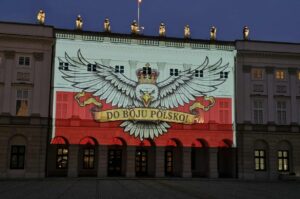 Po wszystkim prezydent Nawrocki pokazał, że „umie w internety” i nakazał wyświetlić obraz niewpuszczonej sektorówki na Pałacu Prezydenckim (fotka powyżej).
